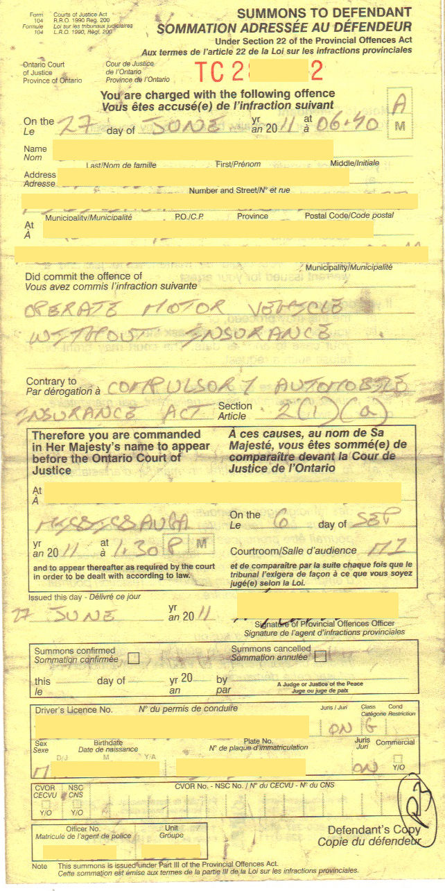 Parking Ticket , Offence Notice and Summons To Defendant examples